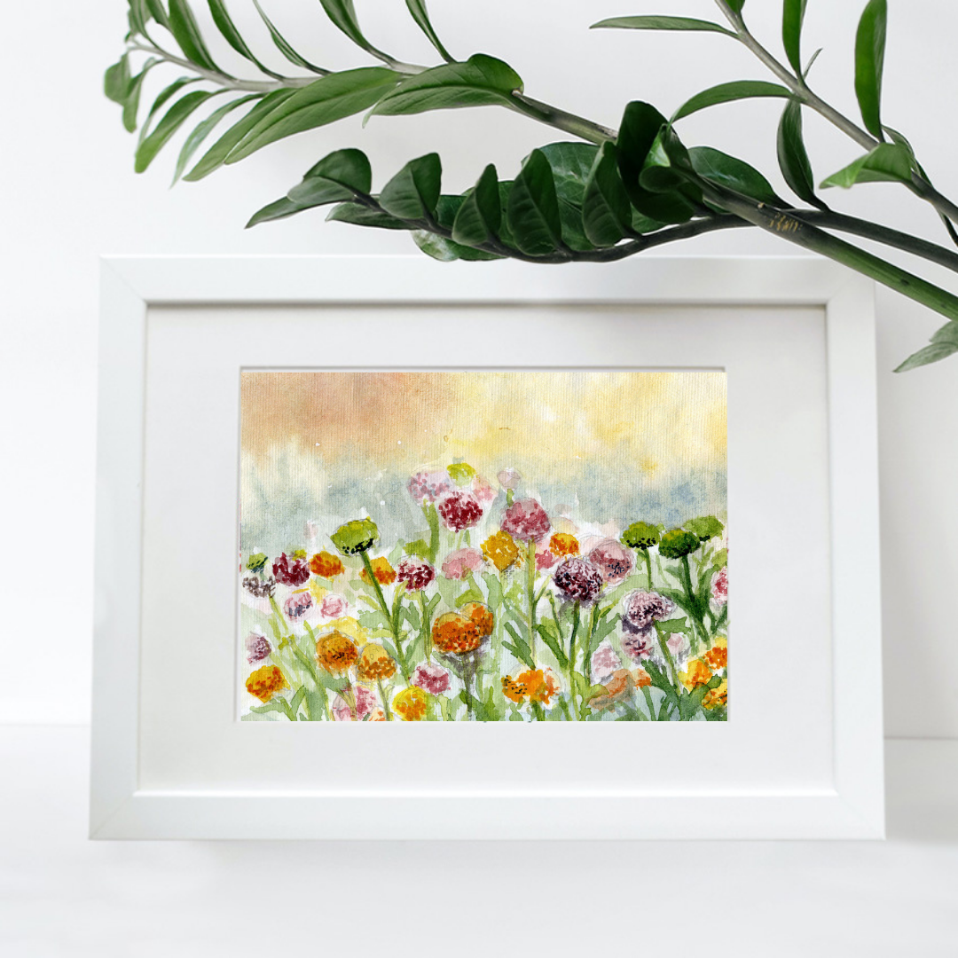 Add this soft wildflower watercolor painting to your space to bring a pop of color through the seasons.